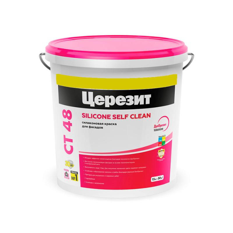 Краска Ceresit CT 48 на силиконовой основе отлично подходит для окрашивания всех видов штукатурок торговой марки Ceresit и других штукатурок на основе цемента или извести. Кроме того, она отлично держится на бетоне и других покрытиях, таких, как плиты тепловой изоляции из полистирола или минеральной ваты. Силиконовая краска, благодаря своим свойствам, отлично подходит для окрашивания наружных поверхностей, не говоря уже о внутренних.